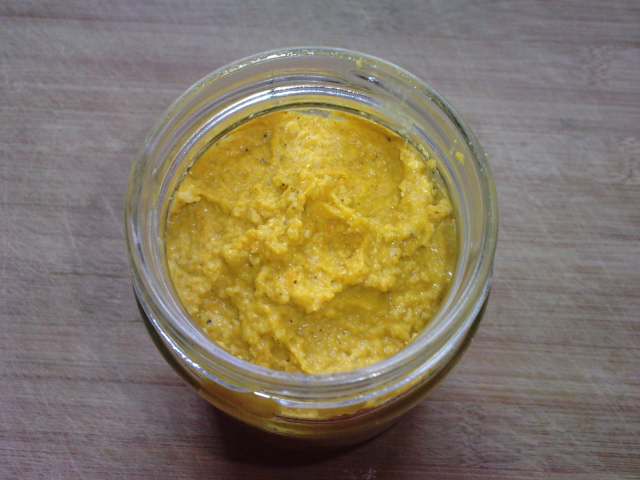 Ausserdem ein Rest (ca. 200 g) tiefgefrorenes, bereits eingeweichtes Sojagranulat, zwei Handvoll geröstete Nuss- bzw. Saatenmischung, Hirseflocken, Sojaflocken, Kokosmehl, Oregano, Kräutersalz, Pfeffer, Paprika, Hefeflocken, bisschen Brühe, weiche gedünstete Zwiebel- und Knoblauchwürfelchen, 3-4 EL Rapsöl, etwas Wasser, dazu die oben genannten Klebezutaten.